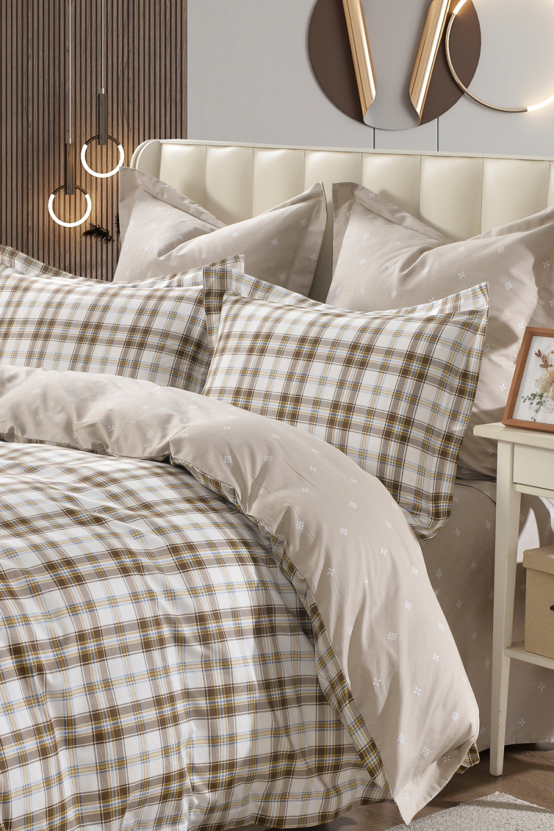 Кроме того, сатин – это излюбленный материал дизайнеров, он никогда не выходит из моды и способен преобразить любой интерьер. Сдержанная классическая клетка в бежевых тонах придаст статусный, изысканный вид Вашей спальне, добавит тепла и уюта утреннему пробуждению.